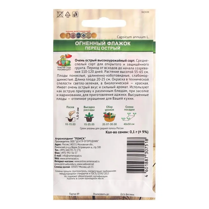 Очень острый высокоурожайный сорт. Среднеспелый сорт для открытого грунта и пленочных теплиц. Период от всходов до начала созревания 110-120 дней. Растение высотой 55-65 см. Плоды пониклые, удлиненно-хоботовидные, слабоморщинистые. Длина плода 20-25 см. Окраска в технической спелости светло-зеленая, в биологической – красная. Имеет очень острый вкус и сильный аромат. Используют как острую приправу к различным блюдам, при засолке и мариновании, для приготовлении аджики. Высушенные плоды - отличное украшение для Вашей кухни.