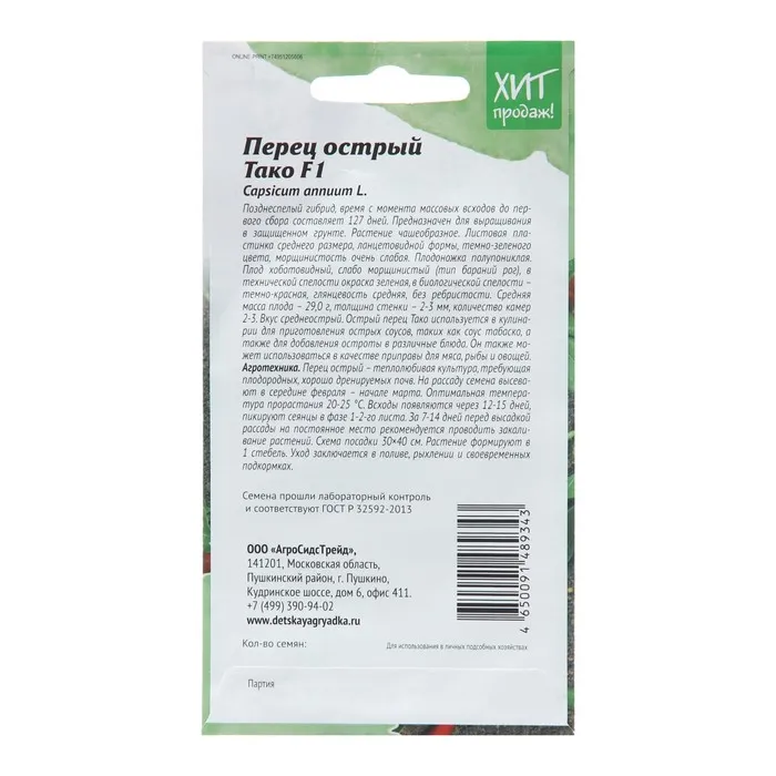 Семена Перец острый "Тако F1", 5 шт — Характеристики