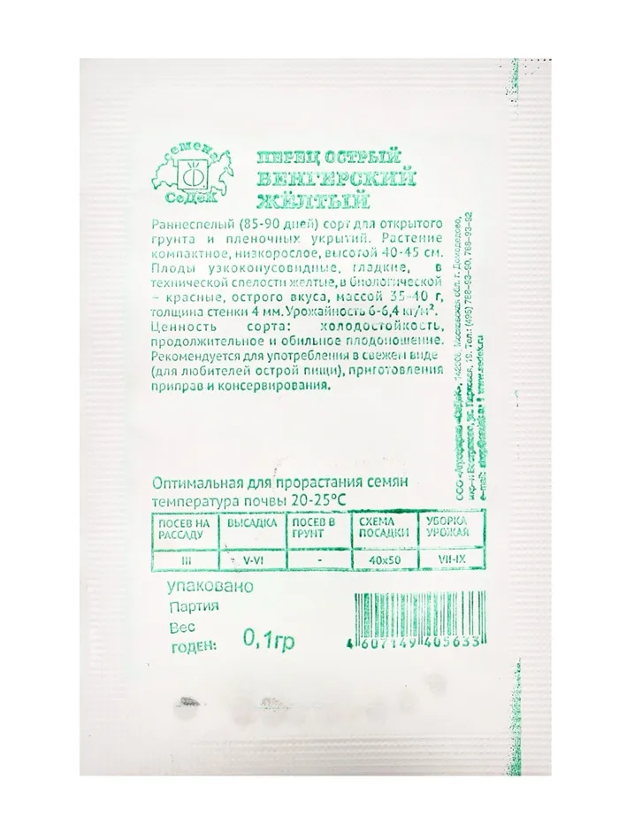 Семена перец острый "Венгерский желтый "0.1 г — Характеристики