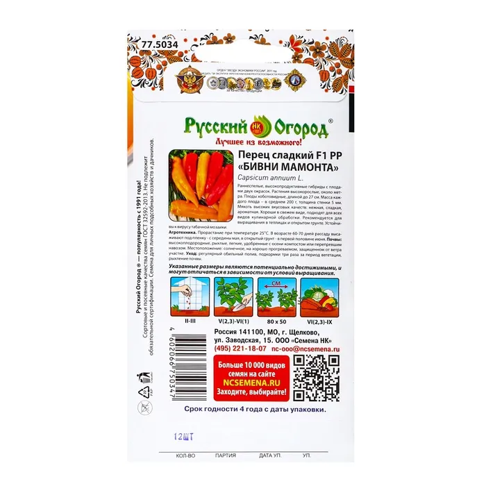 Семена Перец Русский размер "Бивни мамонта" F1, 12 шт — Характеристики