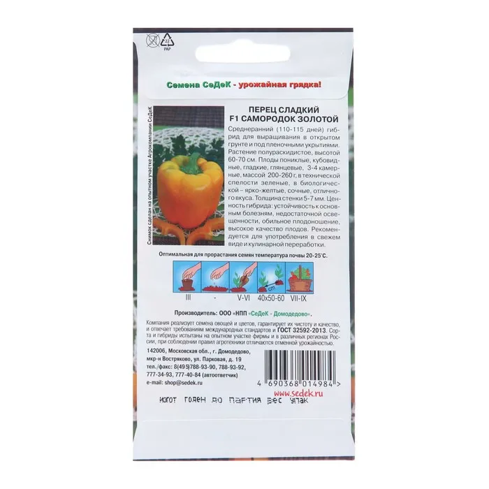 Семена Перец "Самородок золотой F1", 0,1 г — Характеристики