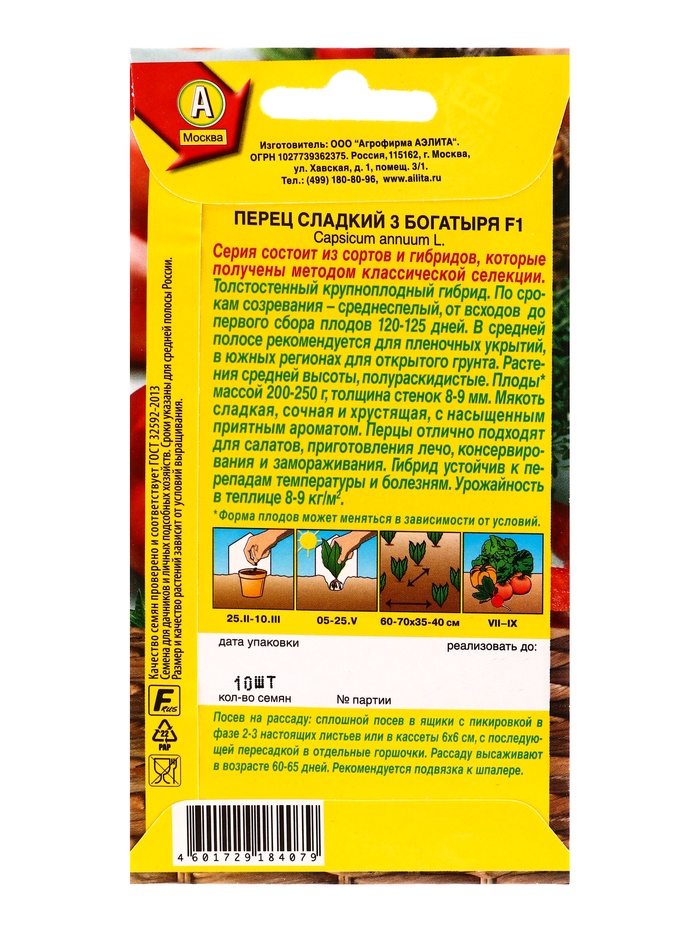 Семена Перец сладкий 3 богатыря F1 Профи-Аэлита, Ц/П,10 шт. — Характеристики