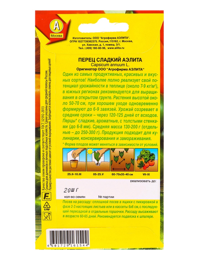 Семена Перец сладкий «Аэлита», 20 шт. — Характеристики
