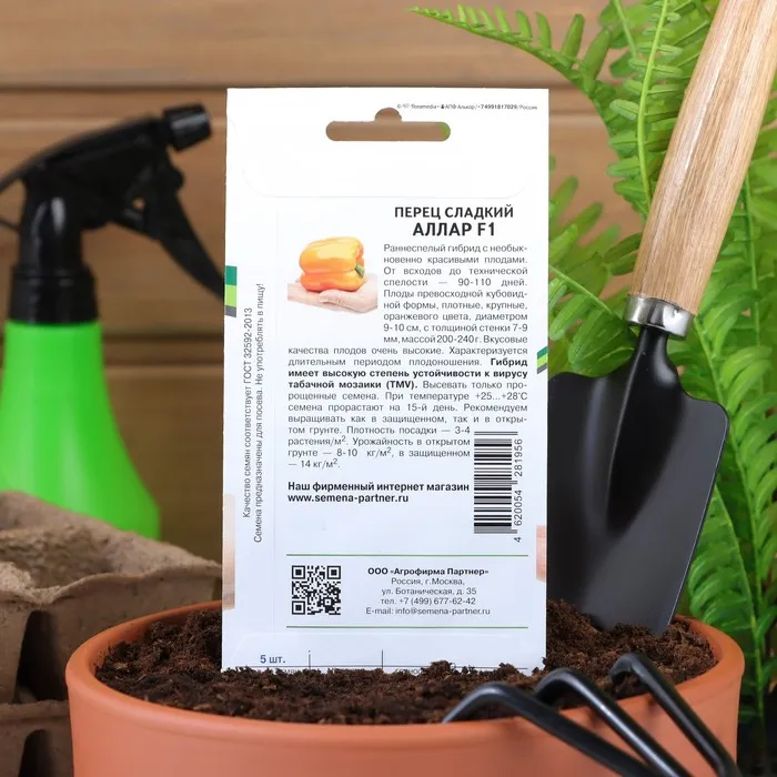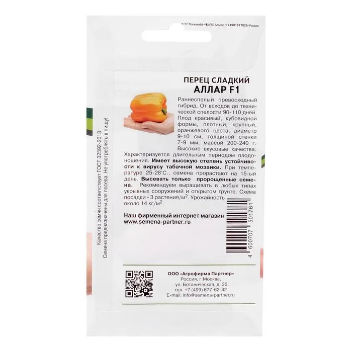 Гибрид раннеспелый. От всходов до технической спелости 90-110 дней. Плод красивый, превосходной кубовидной формы, плотный, крупный, оранжевого цвета, диаметром 9-10 см, толщиной стенки 7-9 мм, массой 200-240 г. Высокие вкусовые качества. Характеризуется длительным периодом плодоношения. При температуре 25-28°C семена прорастают на 15-й день. Гибрид имеет высокую степень устойчивости к вирусу табачной мозаики. Высевать только пророщенные семена. Рекомендуем выращивать, как в защищенном, так и в открытом грунте. Плотность посадки 3 растения/м2, допустимо 4 растения/м2. Урожайность около 14кг/м2.