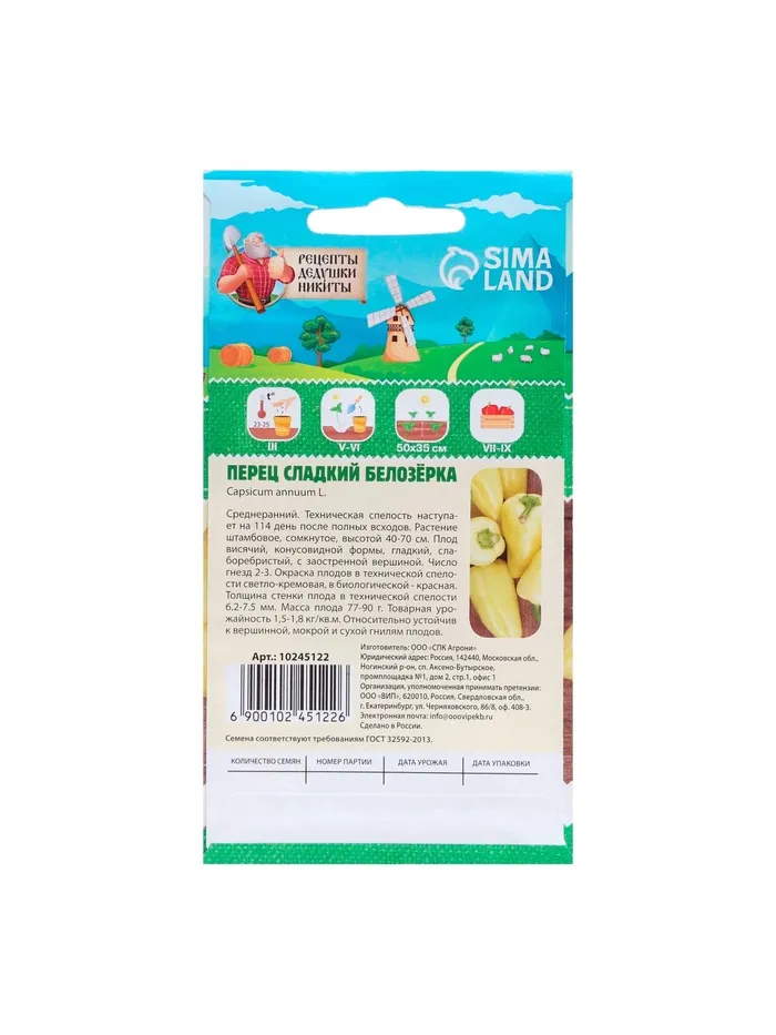 Перец сладкий "Белозёрка" — это один из самых популярных сортов, который порадует вас своей урожайностью и великолепным вкусом. Этот сорт идеально подходит как для открытого грунта, так и для теплиц, обеспечивая вас яркими и сочными плодами.