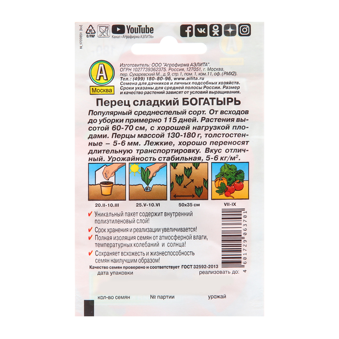 Среднеранний, стабильно урожайный сорт с хорошо развитым кустом. Плоды призмовидной формы, очень крупные, выравненные, толстостенные (толщина 6,5–7,0 мм). Масса — 150–180 г, длина — 15–18 см. Мякоть сочная, нежная, сладкая, с приятным перечным ароматом и повышенным содержанием витамина С.