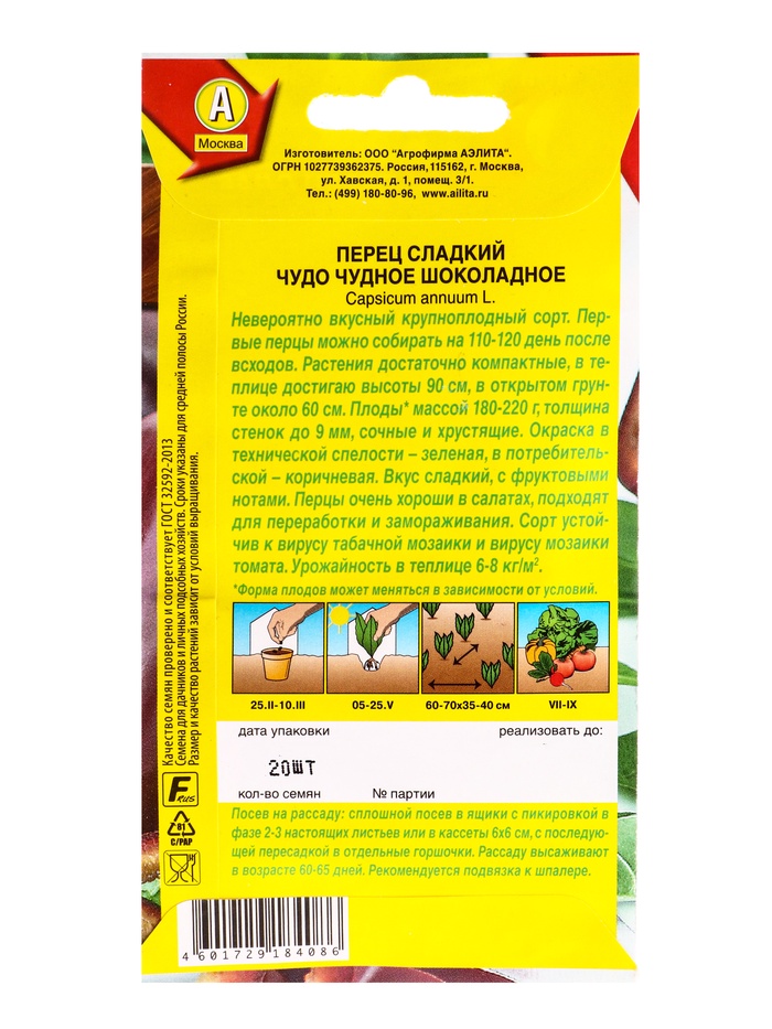 Семена Перец сладкий Чудо чудное шоколадное, Ц/П,20 шт. — Характеристики