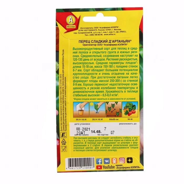 Посев на рассаду в начале марта, пикировка в фазе одного настоящего листа, высадка на постоянное место 70-дневной рассады по схеме 50х35 см. Высокорослые сорта выращивают на шпалере с формировкой в 2 стебля, низкорослые – в обычной штамбовой форме, без подвязки.