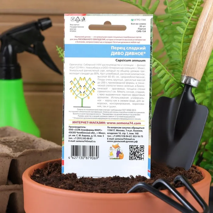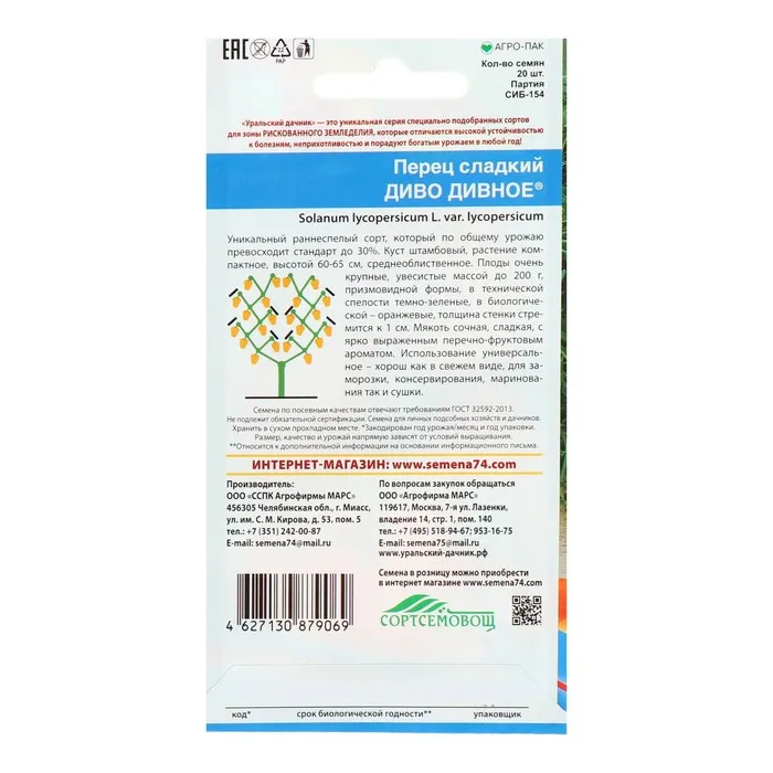Уникальный раннеспелый сорт, который по общему урожаю превосходит стандарт до 30%. Куст штамбовый, растение компактное, высотой 60-65 см, среднеоблиственное. Плоды очень крупные, увесистые массой до 200 г, призмовидной формы, в технической спелости темно-зелёные, в биологической – оранжевые, толщина стенки стремится к 1 см. Мякоть сочная, сладкая, с ярко выраженным перечно-фруктовым ароматом.