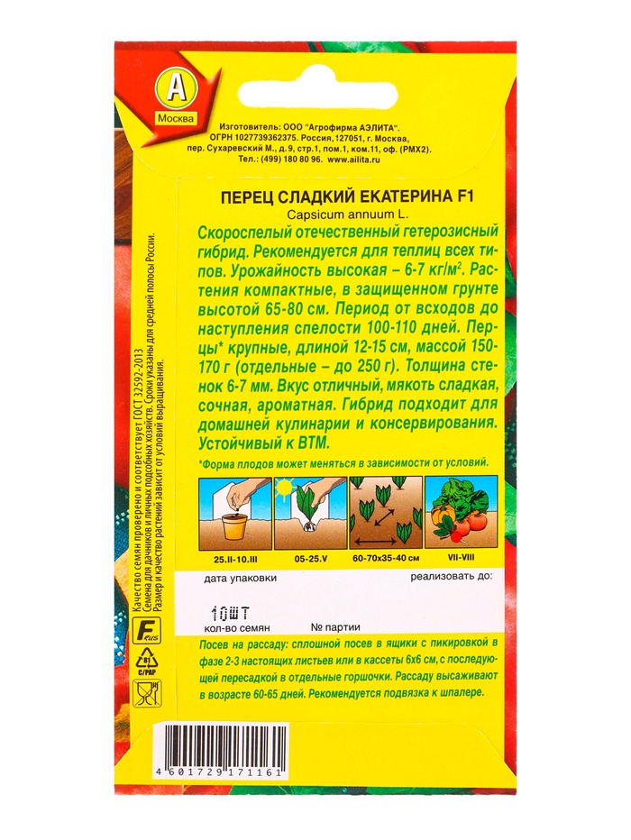 Семена Перец сладкий Екатерина F1, Ц/П,10 шт. — Характеристики