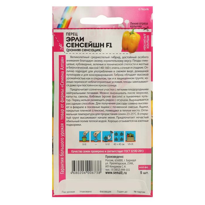 Великолепный среднеспелый гибрид, достойный особого внимания благодаря своему изумительному вкусу. Плоды глянцевые, кубовидные, зеленые в технической спелости и желтые в биологической, массой 140-160 г, очень сочные и сладкие. Отлично подходят для употребления в свежем виде, домашней кулинарии и для консервирования. Гибрид обладает высокой урожайностью как в открытом грунте, так и под пленочными укрытиями, хорошо переносит неблагоприятные условия, плоды завязываются даже при постоянном ярком солнце. Предпочитает солнечные участки с легкими плодородными нейтральными почвами. Можно выращивать после моркови, капусты, свеклы, бобовых (кроме фасоли) и тыквенных культур. Перец нельзя размещать рядом с огурцом. Выращивается рассадным способом. Для получения рассады семена высевают в феврале в посевные ящики с почвенной смесью. Глубина заделки не более 1 см. Ящики, накрытые пленкой (стеклом), помещают в теплое место. Оптимальная температура для прорастания семян 23-25°С. В открытый грунт высаживают в начале июня. Посадочный интервал 40х40 см. Предпочитает нечастый обильный полив теплой водой. Хорошо отзывается на азотные подкормки.