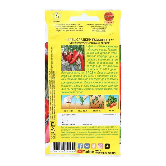 Один из самых надежных гибридов перца. Гарантированный урожай! Этот сладкий перец с плодами необычной формы отлично подходит для регионов с коротким летом. Гибрид скороспелый (от всходов до технической спелости 115-120 дней). Растения полуштамбовые, высотой 0,7-0,8 м. Перцы длинные, крупные, массой 190-220 г, с толстыми сочными стенками. Созревая, они меняют темно-зеленую окраску на глянцево-красную. Отлично подходят для салатов и консервирования. Убирая урожай в технической спелости, даже в зоне рискованного земледелия вы получите 2-3 волны плодоношения. Урожайность 6-7 кг/м2.