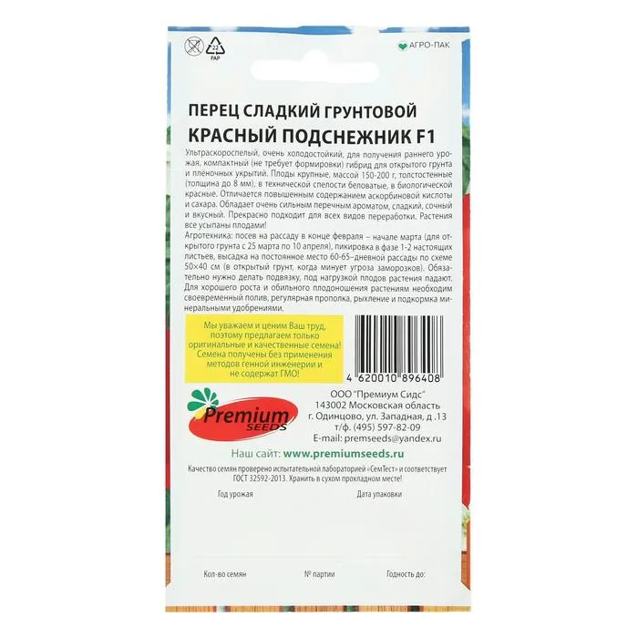 Ультраскороспелый, очень холодостойкий, для получения раннего урожая, компактный (не требует формировки) гибрид для открытого грунта и плёночных укрытий. Плоды крупные, массой 150-200г, толстостенные (толщина до 8 мм), в технической спелости беловатые, в биологической красные. Отличается повышенным содержанием аскорбиновой кислоты и сахара. Обладает очень сильным перечным ароматом, сладкий, сочный и вкусный. Прекрасно подходит для всех видов переработки. Растения все усыпаны плодами!