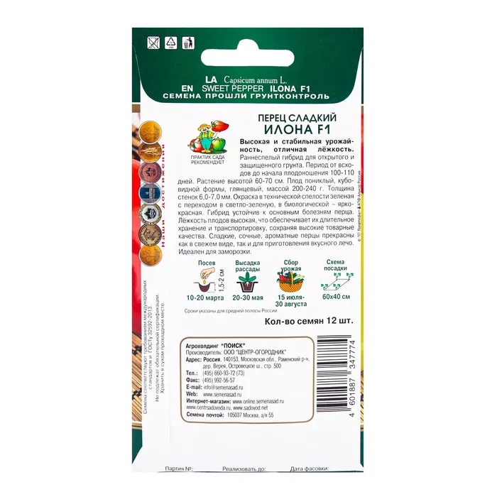 Эти семена сладкого перца «Илона» F1 отличает надежность и высокая урожайность. Этот гибрид болгарского перца прекрасно подходит для выращивания как на открытом грунте, так и в теплицах. Семена сохраняют свою посевную способность в течение 3 лет, обеспечивая вас вкусными и сочными плодами на протяжении нескольких сезонов.