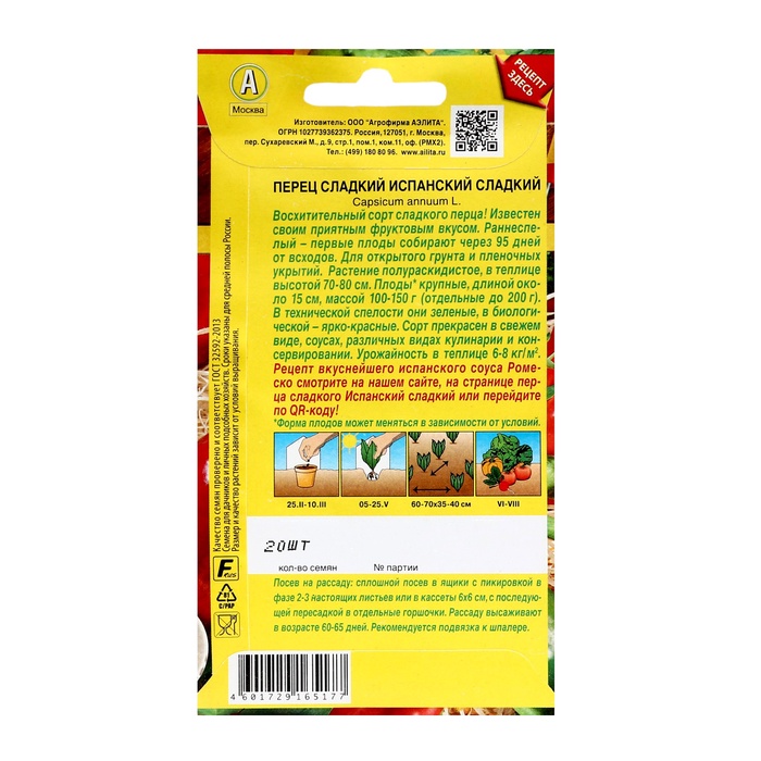 Семена Перец сладкий "Испанский сладкий", ц/п, 20 шт — Характеристики