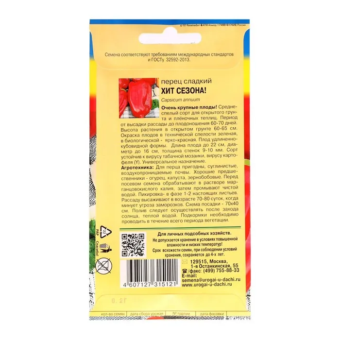 Семена Перец сладкий "Хит сезона", 0,1 г — Характеристики