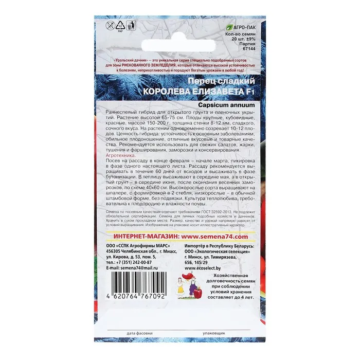 Раннеспелый гибрид для открытого грунта и пленочных укрытий. Растение высотой 65-75 см. Плоды крупные, кубовидные, красные, массой 150-200 г, толщина стенки 8-12 мм, сладкого, сочного вкуса. На растении одновременно созревает 10-12 плодов.
