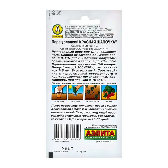 Раннеспелый, высокоурожайный сорт (период от всходов до технической спелости 110-115 дней). Предназначен для выращивания в открытом и защищенном грунте. Растения полуштамбовые, высотой 70-80 см, одновременно завязывает 6-8 плодов. Перцы кубовидные, крупные, массой 200-250 г, толщина стенок 7-8 мм. Вкус отличный, мякоть сладкая и сочная. Прекрасно подходит для потребления в свежем виде, любой кулинарной обработки и всевозможных зимних заготовок. Сорт устойчив к недостаточной освещенности и пониженным температурам. Урожайность высокая, 9-10 кг/ м2.