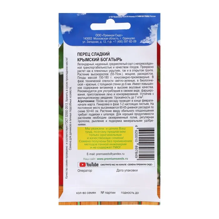 Семена Перец сладкий "Крымский богатырь", 0,1 г — Характеристики