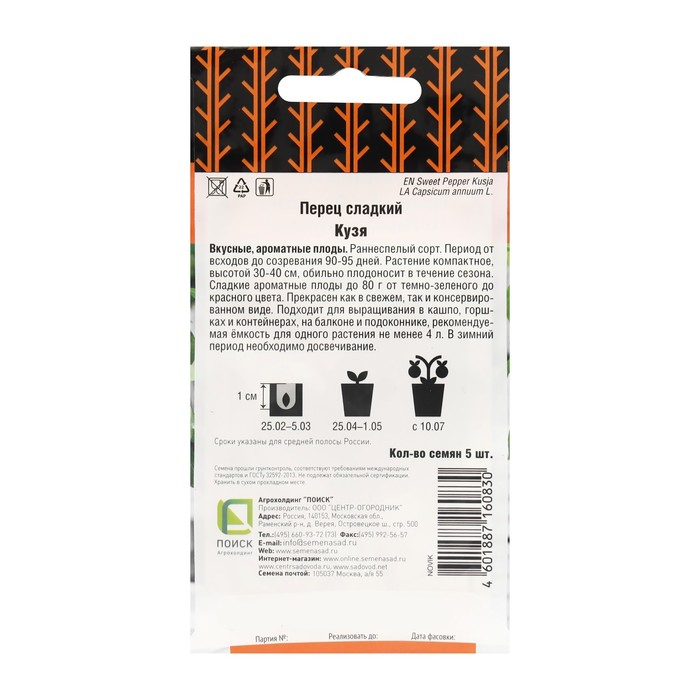 Семена Перец сладкий "Кузя", 5 шт — Характеристики