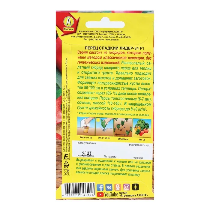 Серия состоит из гибридов, которые получены методом классической селекции, без генетических изменений. Раннеспелый, салатный гибрид сладкого перца для теплиц и открытого грунта. Идеально подходит для свежих салатов и домашних заготовок. Формирует полураскидистые кусты высотой 80-100 см в условиях теплицы. Плоды созревают через 105-115 дней после появления всходов. Перцы толстостенные (6-7 мм), сочные, массой 110-140 г. В защищенном грунте урожайность гибрида до 8-10 кг/м 2. Форма плодов может меняться в зависимости от условий.Выращивают с подвязкой к кольям или на шпалере с формированием в два стебля. В первом разветвлении удаляют коронный цветок. Для усиления завязываемости плодов слегка потряхивают шпалеру.