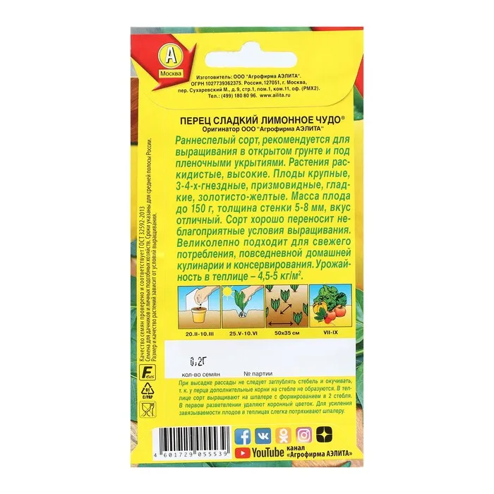 Семена Перец сладкий "Лимонное чудо", 20 шт — Характеристики