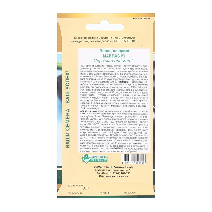 Семена Перец сладкий Маврас F1, 5 шт — Характеристики