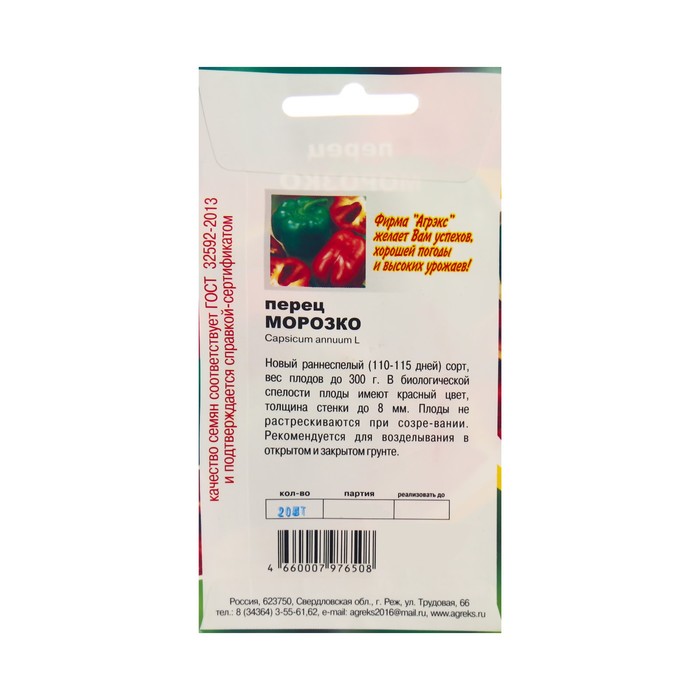 Семена Перец сладкий «Морозко», 20 шт. — Характеристики