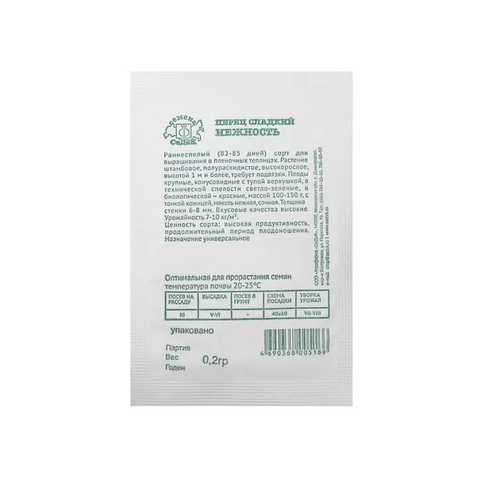 Среднеранний (110-120 дней от всходов до плодоношения), среднерослый (до 80 см), полураскидистый сорт. Рекомендуется для выращивания в пленочных и остекленных теплицах. Плоды удлиненно-пирамидальной формы, сочные, с нежной кожицей, массой 100-110 г. Окраска плода в технической спелости светло-зеленая, при созревании становится красной. После высадки рассады в теплицу необходимо удалить все боковые побеги и листья до первой развилки. Урожайность одного растения 1,7-1,9 кг.