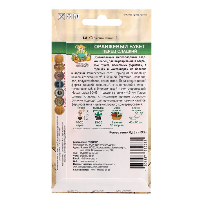 Оригинальный мелкоплодный сладкий перец для выращивания в открытом грунте, пленочных укрытиях, в горшках и контейнерах на балконе и лоджии. Раннеспелый сорт. Период от всходов до начала созревания 95-110 дней. Растение низкорослое, полуштамбовое, компактное. Плод конусовидной формы, гладкий, глянцевый, в технической спелости темно-зеленый, в биологической - желто-оранжевый. Масса плода 30-45 г, толщина стенки 4-4,5 мм. Плоды сочные, сладкие, с пикантным пряным ароматом. Отлично подходят для приготовления свежих салатов, фарширования и цельноплодного консервирования.