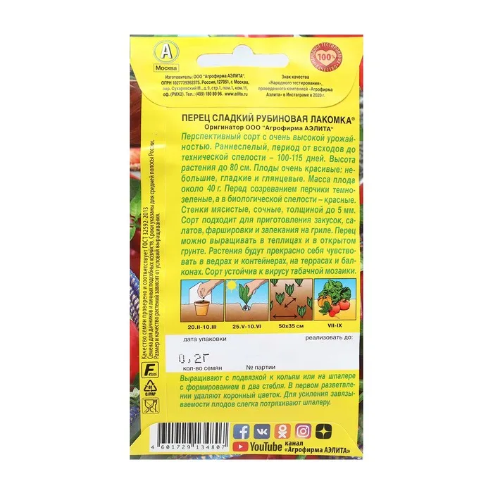 Новый перспективный сорт с очень высокой урожайностью. Раннеспелый, период от всходов до технической спелости – 100-115 дней. Высота растения до 80 см. Плоды очень красивые: небольшие, гладкие и глянцевые. Масса плода около 40 г. Перед созреванием перчики темно-зеленые, а в биологической спелости – красные. Стенки мясистые, сочные, толщиной до 5 мм. Сорт подходит для приготовления закусок, салатов, фаршировки и запекания на гриле. Перец можно выращивать в теплицах и в открытом грунте. Растения будут прекрасно себя чувствовать в ведрах и контейнерах, на террасах и балконах. Сорт устойчив к вирусу табачной мозаики.