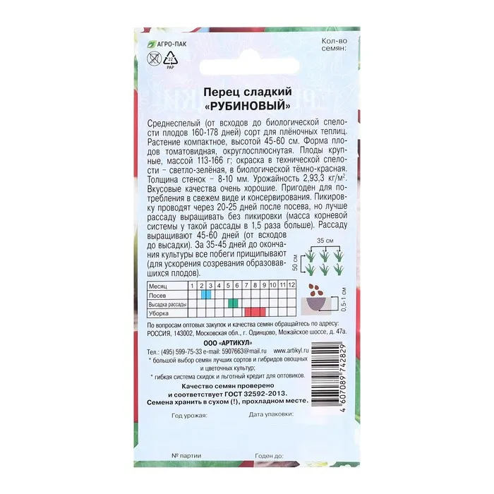 Семена Перец сладкий "Рубиновый", 0,1 г — Характеристики