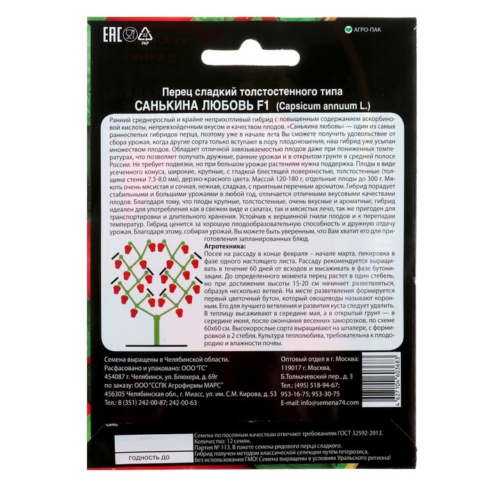 Ранний среднерослый и крайне неприхотливый гибрид с повышенным содержанием аскорбиновой кислоты, непревзойденным вкусом и качеством плодов. «Санькина любовь» — один из самых раннеспелых гибридов перца, поэтому уже в начале лета Вы сможете получить удовольствие от сбора урожая, когда другие сорта только вступают в пору плодоношения, наш гибрид уже усыпан множеством плодов.