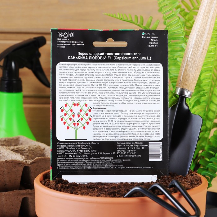 Посев на рассаду в конце февраля – начале марта, пикировка в фазе одного настоящего листа. Рассаду рекомендуется выращивать в течение 60 дней от всходов и высаживать в фазе бутонизации. До определенного момента перец растет в один стебель, но при достижении высоты 15-20 см начинает разветвляться, образуя несколько ветвей. На месте разветвления формируется первый цветочный бутон, который овощеводы называют коронным. Его для лучшего ветвления и развития куста следует удалить. В теплицу высаживают в середине мая, а в открытый грунт — в середине июня, после окончания весенних заморозков, по схеме 60х60 см. Высокорослые сорта выращивают на шпалере, с формировкой в 2 стебля. Культура теплолюбива, требовательна к плодородию и влажности почвы.