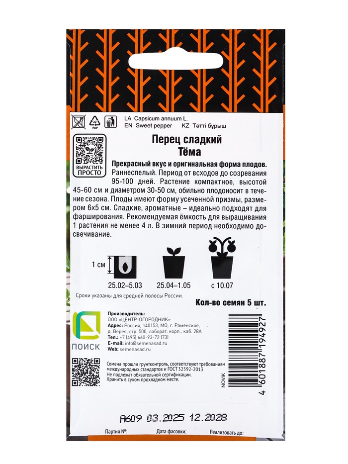 Очень необычный сорт, который хорошо подойдет для выращивания в горшках и кашпо на подоконниках, балконах – перец Тема. Купить семена отличного качества и всхожести вы всегда можете в «Русском Огороде» по приятной цене. Урожайный, миниатюрный, сладкий, ранней спелости – главные характеристики вида.