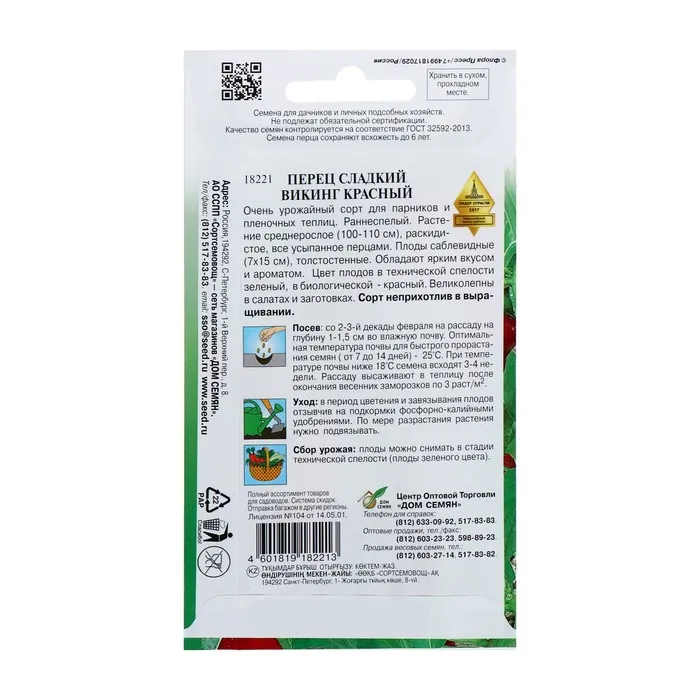 Семена Перец сладкий "Викинг" select, красный, раннеспелый, 25 шт — Характеристики