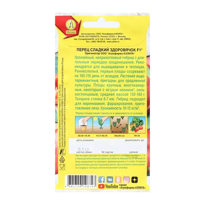 Новый урожайный гибрид с длительным периодом плодоношения. Рекомендуется для выращивания в теплицах. Неприхотливый. хорошо адаптируется в условиях средней полосы и северо-запада. Раннеспелый, первые плоды созревают на 105-110 день от всходов. Растения индегерминантные, пригодны для продленной культуры. Плоды конусовидные, 3-4-х-камерные, некоторые с острым носиком, сильноглянцевые, средней массой 130-160 г. Толщина перикарпия составляет 6-7 мм. Зрелые красные плоды отличаются очень высоким содержанием витамина С - 240-250 мг на 100 г сырой массы. Назначение салатное и консервное: маринование, фарширование, приготовление лечо. Товарная урожайность 10-12 кг/м2.