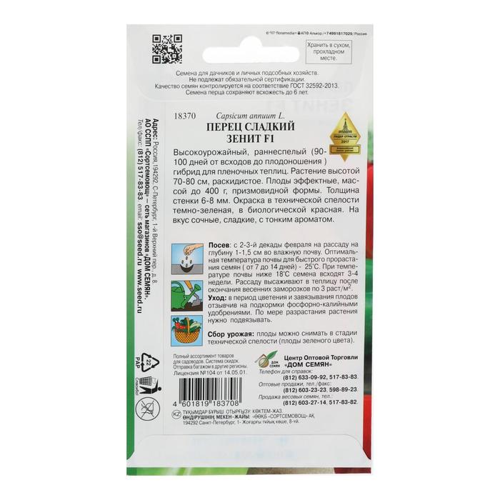 Семена Перец сладкий "Зенит" F1, 10 шт — Характеристики