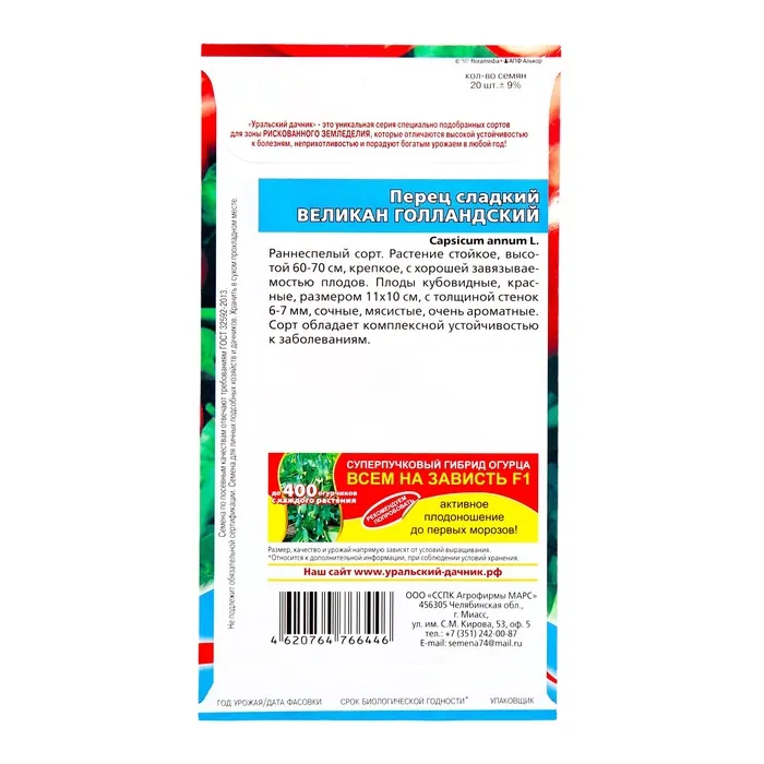 Семена Перец "Великан голландский", 20 шт — Характеристики