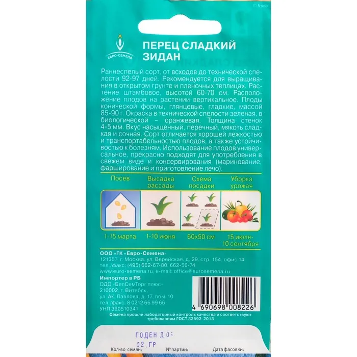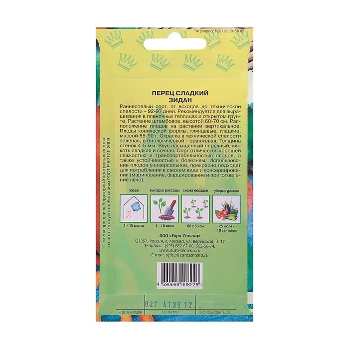 Агротехника: посев 1 – 15 марта, высадка рассады 1 - 10 июня, схема высадки 60 х 50 см, уборка урожая 15 июля - 10 сентября