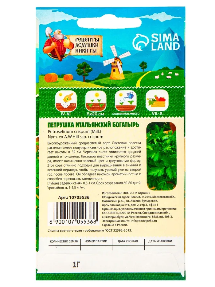 Семена петрушки Итальянский богатырь — это ваш надежный помощник для получения богатого урожая вкусной и ароматной зелени. Они сочетают в себе все необходимые качества: высокую урожайность, простоту выращивания и устойчивость к внешним факторам. Приобретая этот пакетик, вы инвестируете в качество своей пищи и удовольствие от садоводства. Не упустите возможность вырастить настоящего богатыря на своем участке! Сделайте шаг к здоровому и вкусному будущему прямо сейчас!