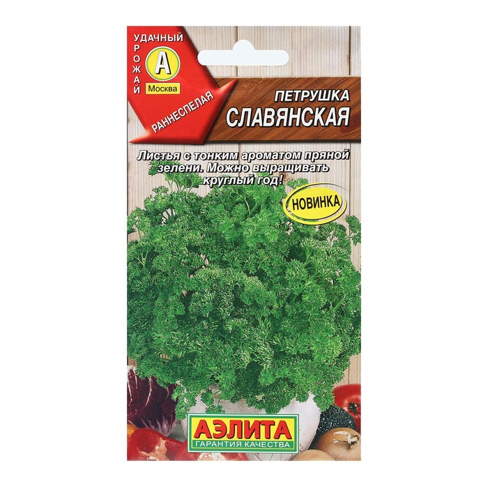 Среднеспелый (70-80 дней от всходов до технической спелости) листовой сорт. Розетка крупная, полураскидистая. Рекомендуется для использования в свежем и сушеном виде в домашней кулинарии. Лист темно-зеленый, крупный, толстый, сильногофрированный. Длина черешка 16-18 см. Зелень хорошо отрастает после срезки. Масса одного растения 100-110 г. Вкусовые качества и ароматичность хорошие. Урожайность зелени до 3,8 кг/кв2.