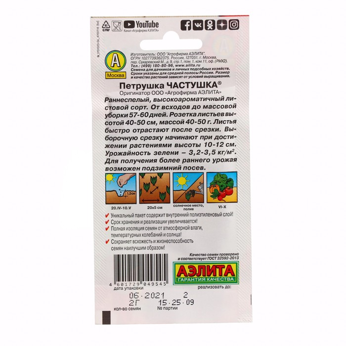 Раннеспелый (57-60 дней от всходов до технической спелости) листовой сорт. Розетка листьев полувертикальная, высотой до 40 см, формирует более 40 гладких зеленых листьев. Масса одного растения– 40-50 г, урожайность зеленой массы– 3,5 кг/м2. Рекомендуется для употребления в свежем виде: как витаминная добавка в первые и вторые блюда, при консервировании овощей, а также для сушки. Зелень сильно ароматичная, быстро отрастает после срезки. Для употребления в свежем виде листья начинают срезать, когда они достигнут высоты 10-12 см, для сушки – во время бутонизации.