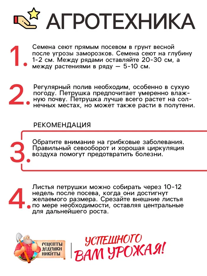 Петрушка "Обыкновенная листовая" — это не просто пряное растение, а настоящая находка для каждого огородника и кулинара. С её яркими, насыщенно зелеными листьями, она станет украшением любого сада и незаменимым компонентом в ваших кулинарных шедеврах.