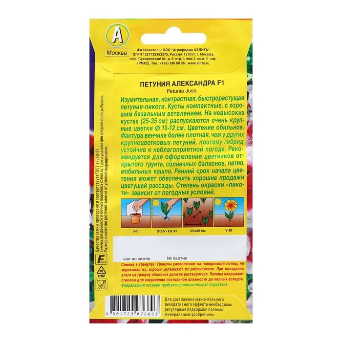Семена Петуния Александра F1 крупноцветковая Одн (драже в пробирке) Ц/П 7 шт — Характеристики