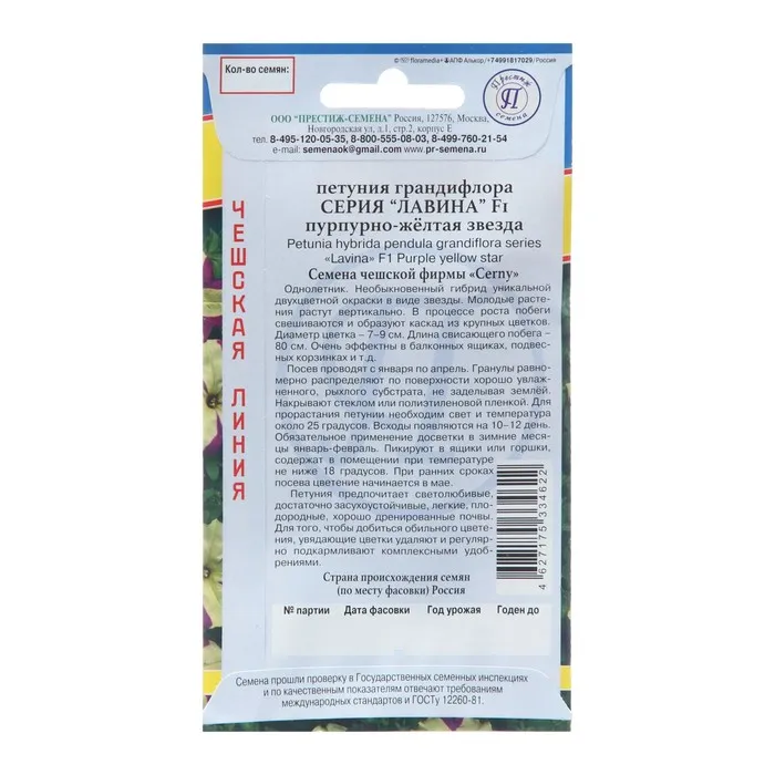 Однолетник. Молодые растения растут вертикально. В процессе роста побеги свешиваются и образуют каскад из крупных цветков. Диаметр цветка - 7 - 9 см. Длина свисающего побега - 80 см. Очень эффектны в балконных ящиках, подвесных корзинках и т.д. Посев проводят с января по апрель. Гранулы равномерно располагают по поверхности хорошо увлажненного, рыхлого субстрата, не заделывая землей. Накрывают стеклом или полиэтиленовой пленкой. Для прорастания петунии необходим свет и температура около 25 градусов. Всходы появляются на 10 - 12 день. Обязательное применение досветки в зимние месяцы январь-февраль. Пикируют в ящики или горшки, содержат в помещении при температуре не ниже 18 градусов. При ранних сроках посева цветение начинается в мае. Петуния предпочитает светолюбивые, достаточно засухоустойчивые, легкие, плодородные, хорошо дренированные почвы. Для того, чтобы добиться обильного цветения, увядающие цветки регулярно удаляют.