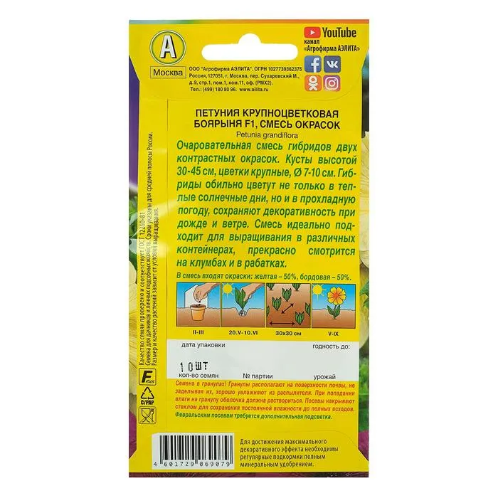 Семена Петуния Боярыня F1 крупноцветковая, смесь окрасок 10 шт. — Характеристики