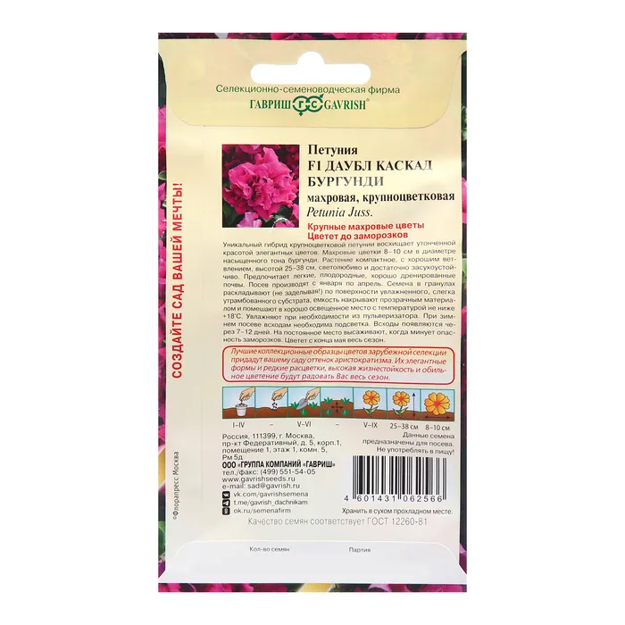 Семена Петуния "Даубл Каскад", ц/п, бургунди, F1, 5 шт — Характеристики