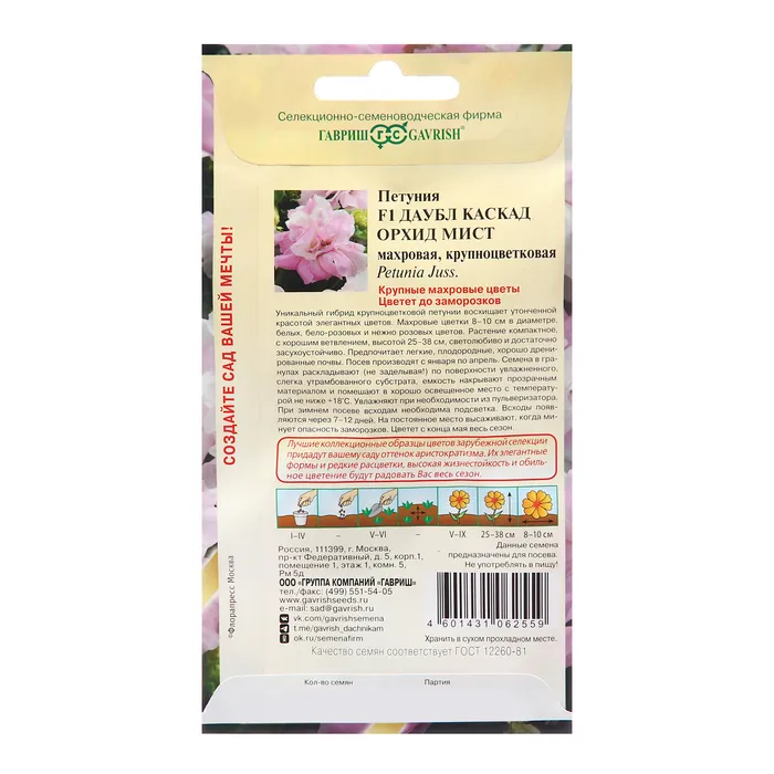 Семена Петуния "Даубл Каскад", ц/п, орхид Мист, F1, 5 шт — Характеристики
