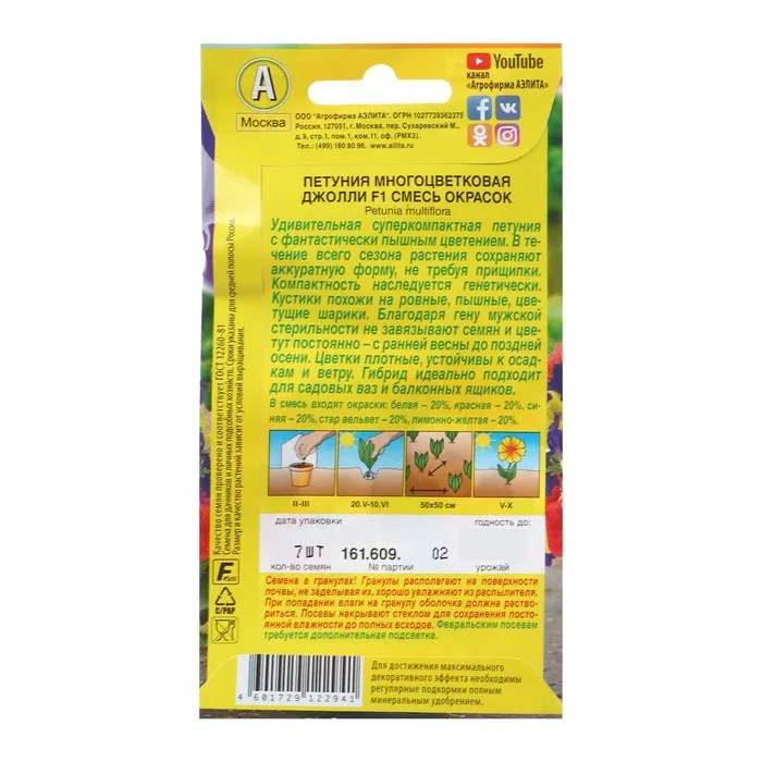 Семена Петуния Джолли F1 многоцветковая, смесь окрасок, 7 шт — Характеристики